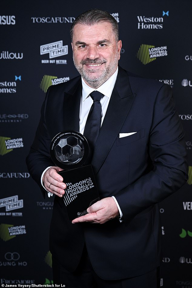 Postecoglou ha sido honrado en el evento anual después de ayudar a transformar al Tottenham desde su llegada procedente del Celtic el verano pasado.