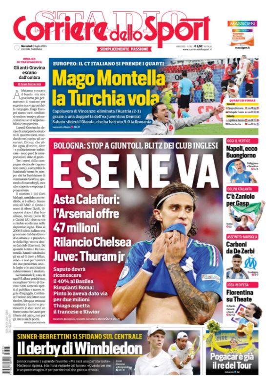 PorFutbol Inglés3 julio 2024Según se informa, el Arsenal ha hecho una oferta de 47 millones de euros por el traspaso del defensa del Bolonia Riccardo Calafiori,...